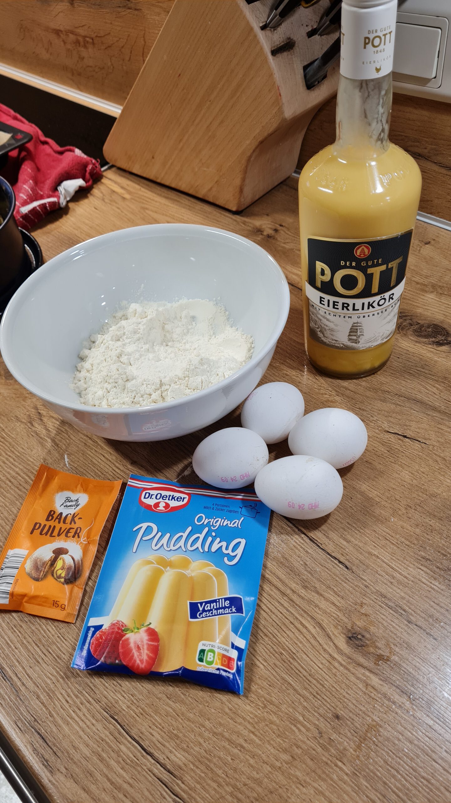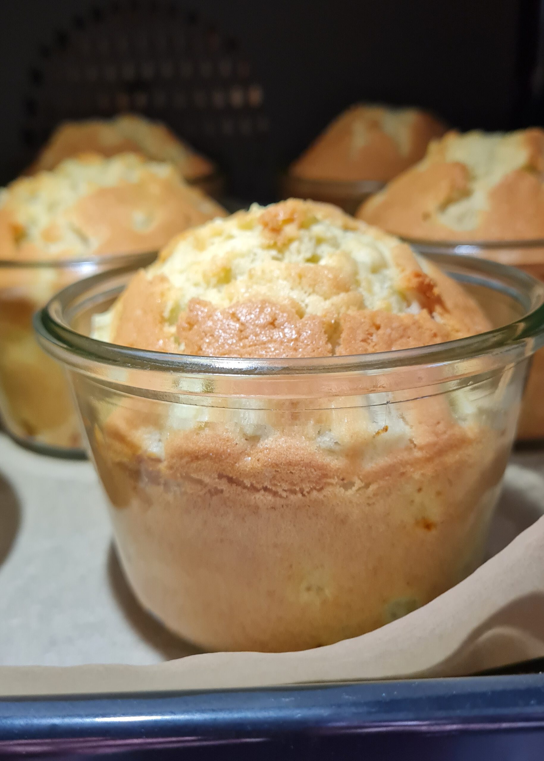 Ich verwende kleine Sturzgläser von Weck mit ca. 300 ml Fassungsvermögen – perfekt für eine Portion. In meinem Lieblingsrezept kommen Eier, Butter, Zucker und Eierlikör vor – das bedeutet: sehr lecker. Der Teig ist locker und saftig, aber  kein Diätkuchen.
