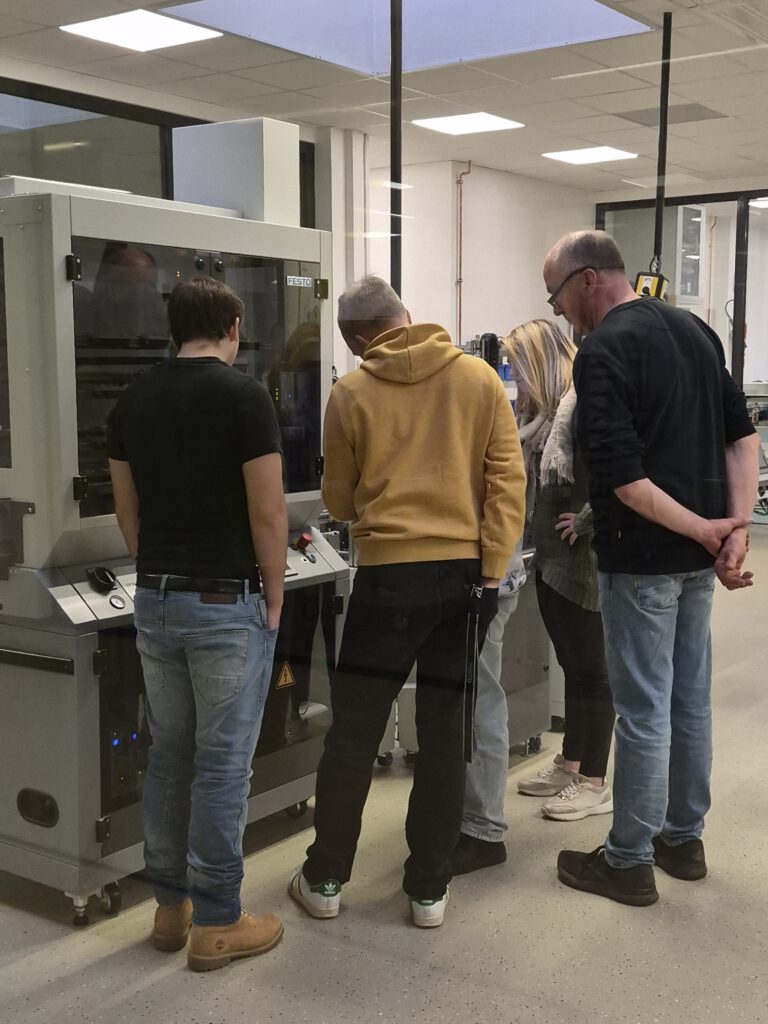 Wie in einem echten Betrieb arbeiteten die Teilnehmenden in verschiedenen Abteilungen: Marketing, Design, Automation, Fertigung und Qualitätsprüfung. In Gruppen übernahmen sie Verantwortung für ihre jeweiligen Bereiche, entwickelten Ideen, trafen Entscheidungen und stimmten sich untereinander ab.
